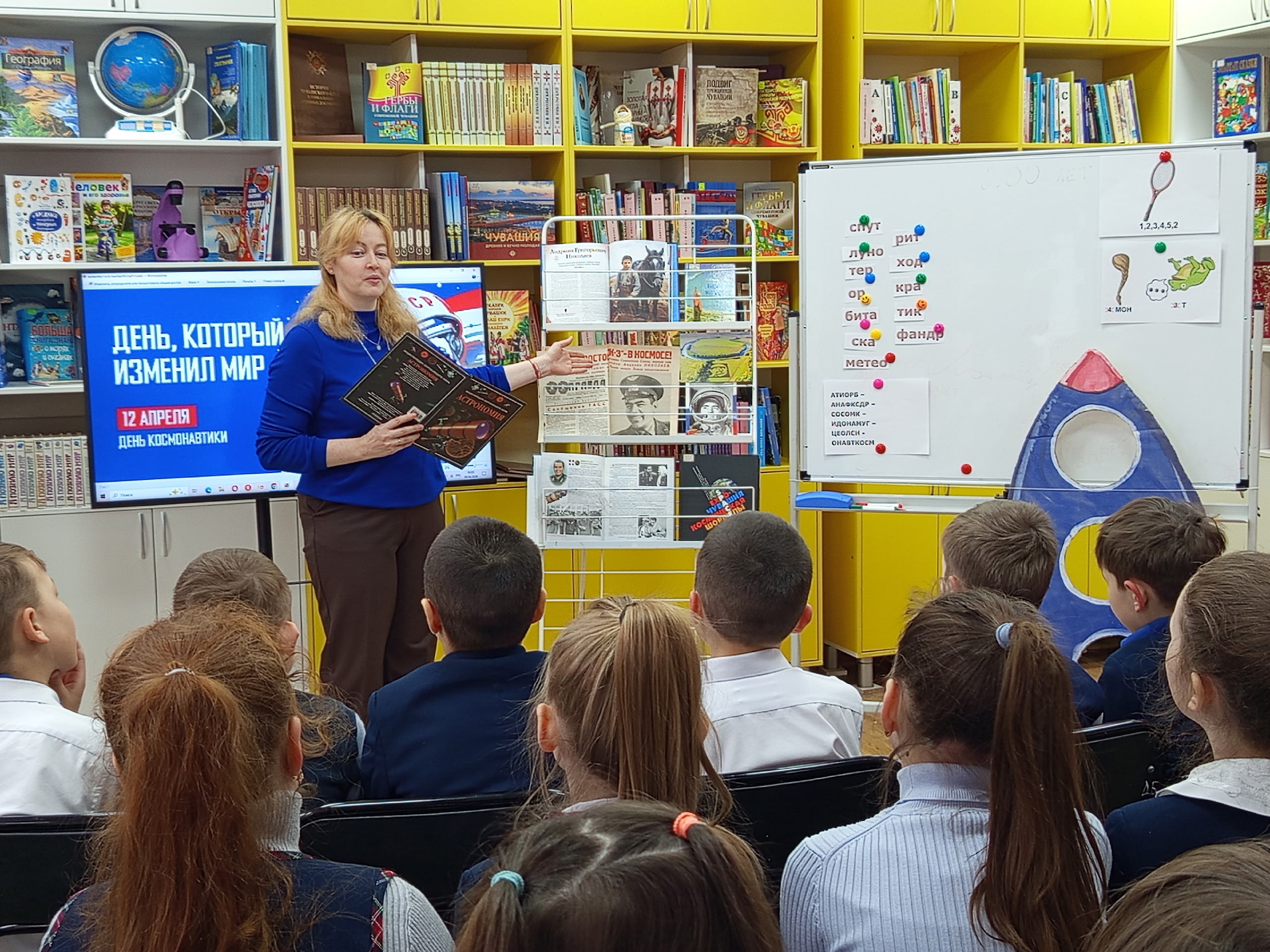 9 апреля 2026 года – В честь Дня космонавтики в центральной детской библиотеке прошло увлекательное космическое портфолио " Гордость Чувашии на просторах Вселенной", собравшее учеников 3 «б» класса МБОУ «Кугесьский лицей».