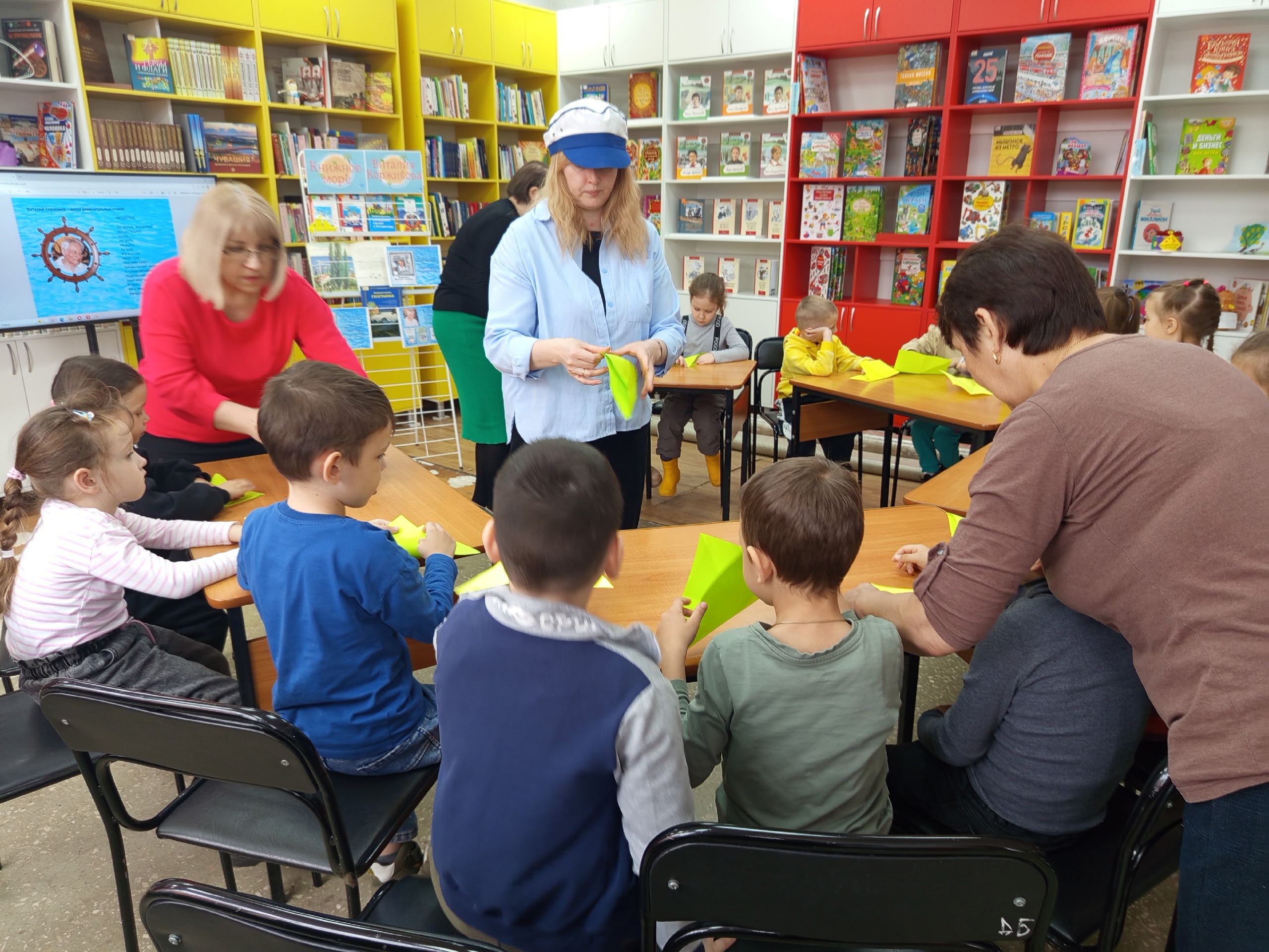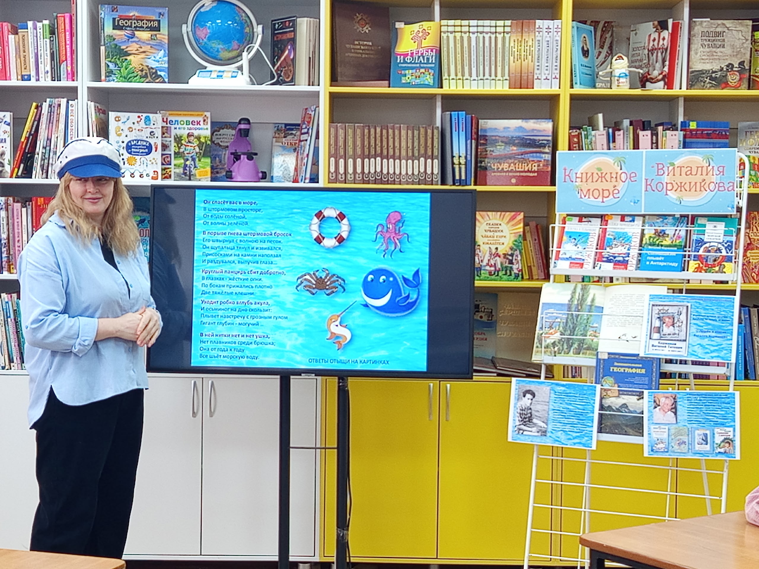 Ребята отправились в захватывающее «плавание» по страницам автора. Познакомились с книжной выставкой «Книжное море Виталия Коржикова». По рассказам библиотекарей ребята узнали, что книги Виталия Коржикова рассказывают о необыкновенных плаваниях к берегам Камчатки, Антарктиды и к дальним тропическим островам. Юные читатели с интересом слушали отрывки из повести «Весёлое мореплавание Солнышкина», знакомясь с приключениями неутомимого юнги и его друзей, разгадывали морские загадки и посмотрели мультфильм «Светлячок», снятый по стихотворению В. Коржикова.