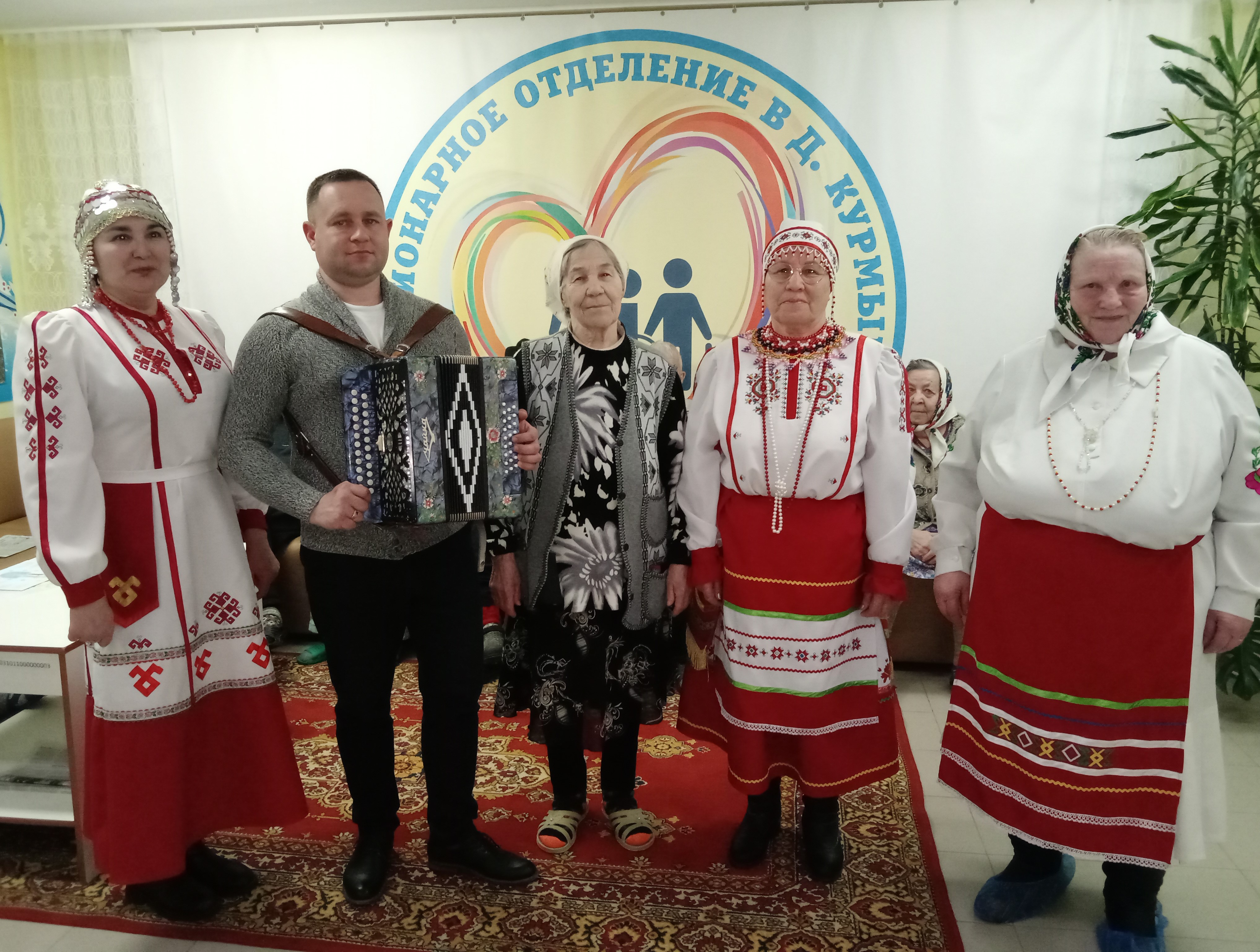 В рамках реализации проекта «Поможем вместе», реализуемого МБУ «ЦБС» Чебоксарского муниципального округа и поддержанного Фондом Тимченко, сотрудники Кшаушской сельской библиотеки и Кшаушского ЦСДК посетили проживающих в стационарном отделении д. Курмыши БУ «ЦСОН Чебоксарского района» Минтруда Чувашии. Они провели вечер-портрет, посвященный 85-летию Валентины Васильевны Рудниковой – заслуженного деятеля музыкального общества Чувашской Республики. Она является получателем социальных услуг в этом отделении.