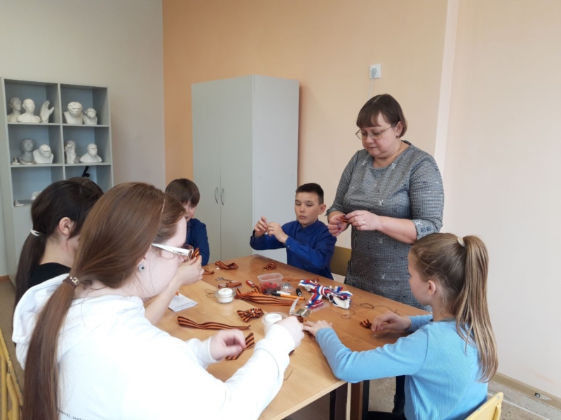 Первым этапом стало изготовление брошей "Георгиевская лента". С трепетом и уважением к истории, каждый участник кропотливо собирал ленту, вкладывая в нее частичку своей души и признательность героям. Эти броши стали не просто украшением, а знаком глубокого уважения и памяти о подвигах предков.