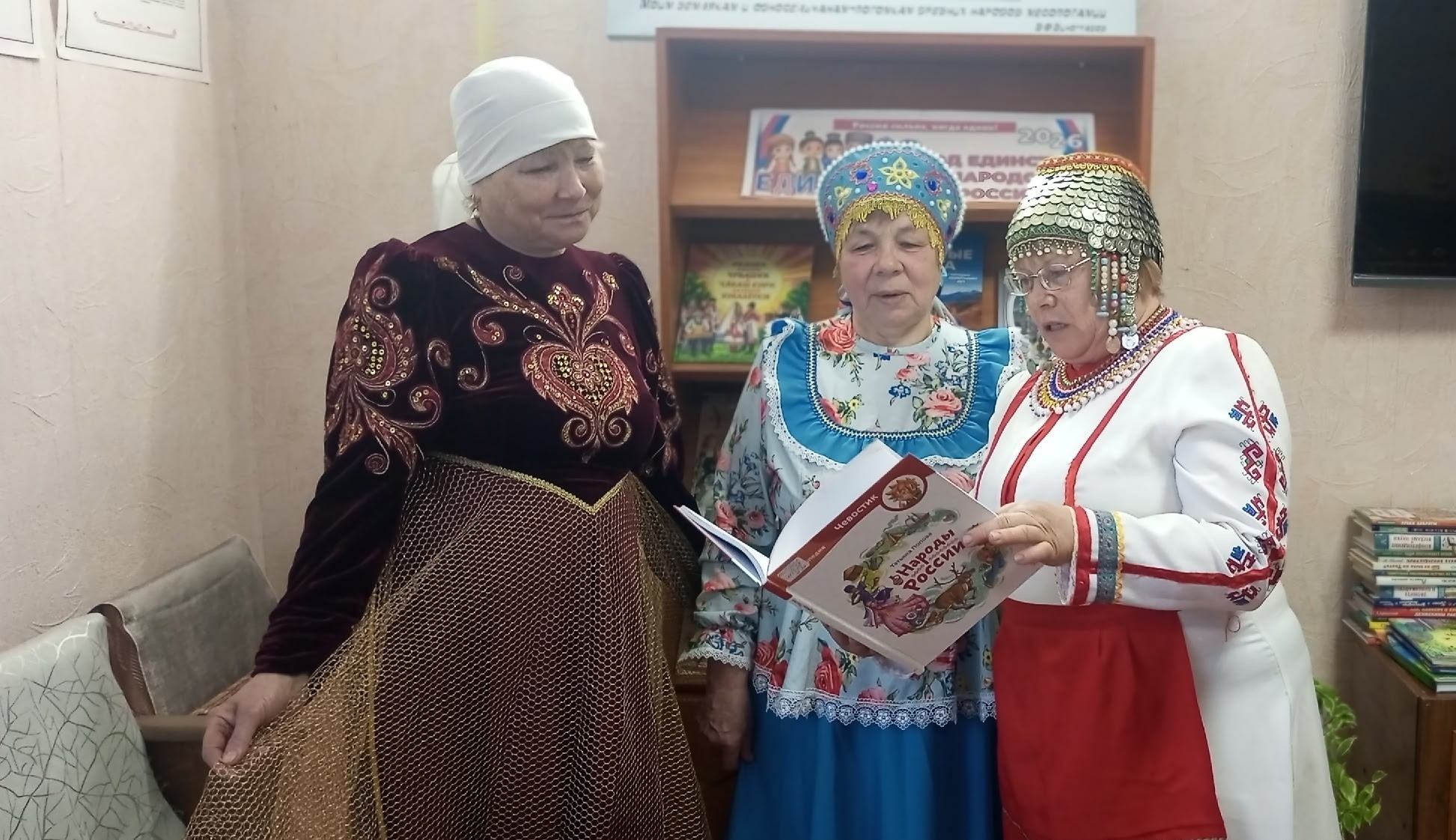 В рамках акции для читателей Шоркинской сельской библиотеки был организован тематический час «Народов много – Родина одна!». Ребята с интересом изучали национальные костюмы русских, татар и чуваш, сравнивали узоры на одежде, узнавали о быте и занятиях жителей разных регионов России.