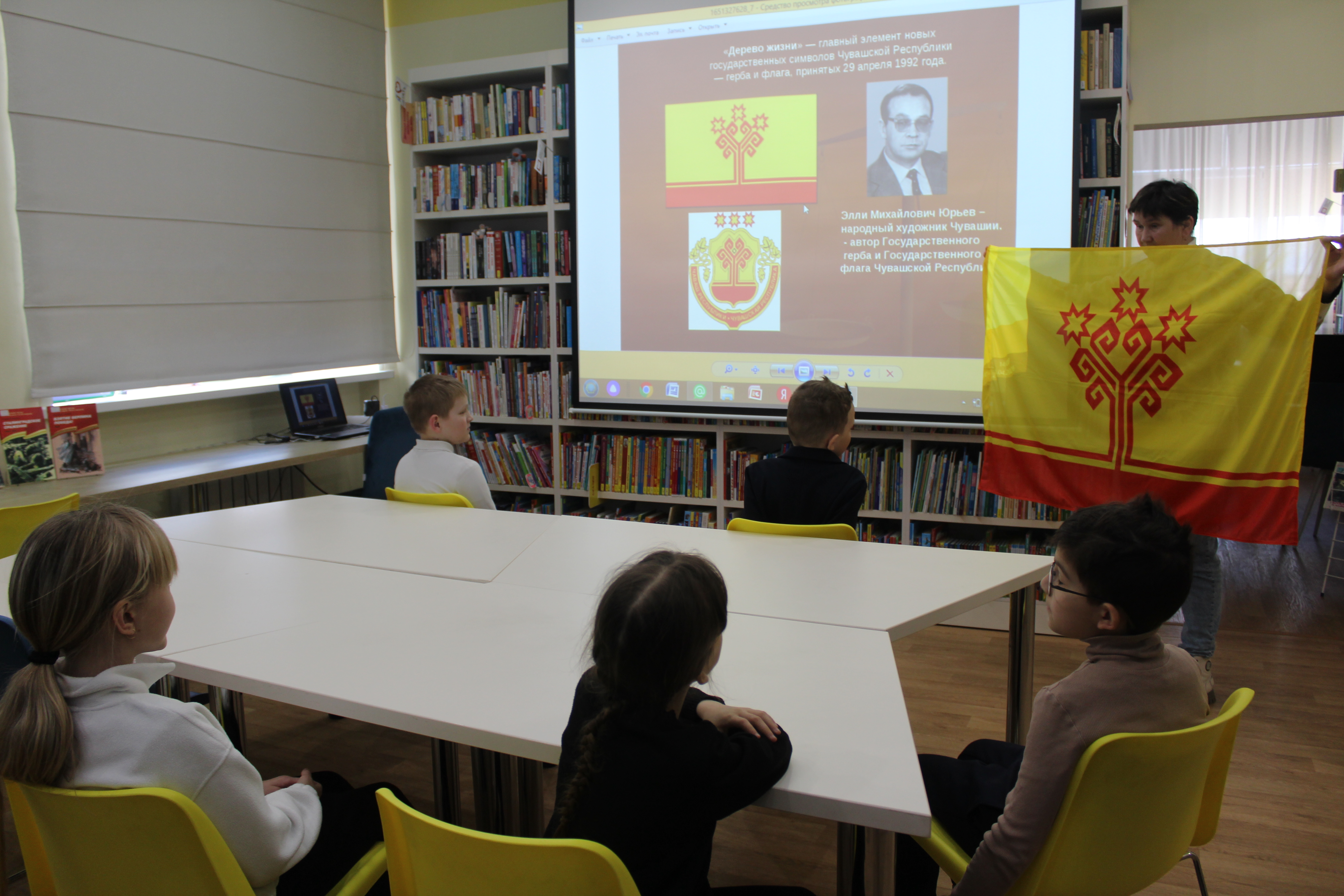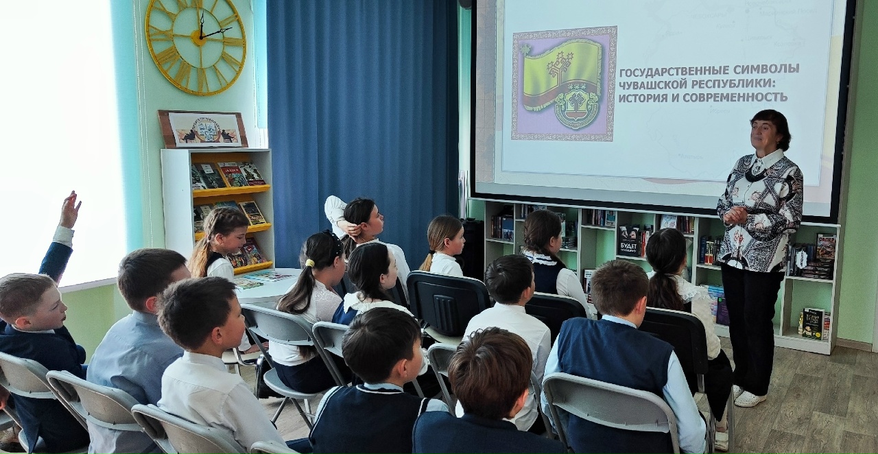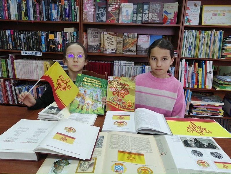 Центральная библиотека провела ряд мастер-классов по изготовлению брошей для учащихся школ округа. Центральная детская библиотека провела для читателей краеведческий час «Дерево жизни и три солнца». В Большекатрасьской сельской библиотеке провели познавательный час «Государственные символы Чувашии». На площадке ТОПа «Вместе» Пархикасинской сельской библиотеки прошел исторический экскурс «Символы Чувашии: история развития». Сарабакасинская сельская библиотека провела час геральдики «Государственные символы моей Чувашии». Янгильдинская сельская библиотека пригласила читателей урок геральдики «Три символа на фоне истории». В Тренькасинской сельской библиотеке состоялся час информации «Государственные символы Чувашии». В Абашевской сельской библиотеке состоялся час краеведения «Азбука государственных символов Чувашии». В Пихтулинской сельской библиотеке состоялся исторический хронограф «Герб, флаг, гимн: история становления и развития». В Кшаушской сельской библиотеке прошел историко-краеведческий час «Знаем ли мы символы Чувашской Республики?». Атлашевская сельская библиотека пригласила юных читателей на краеведческую игру «Символика, рожденная историей». В Нижнемагагазьской сельской библиотеке прошёл краеведческий час «Символы моей Родины». В Синьяльской сельской библиотеке прошел интерактивный урок «Азбука государственных символов». В Икковской сельской библиотеке для школьников прошел познавательный час «Три символа в истории Чувашии». В Большекарачуринской сельской библиотеке прошло мероприятие «Символы Чувашии». В Ишлейской сельской библиотеке прошла информина «Символы малой Родины». В Сятра-Лапсарской сельской библиотеке прошел конкурс рисунков «Мой герб, мой флаг, моя Республика». В Сятра - Маргинской сельской библиотеке прошла информина «История о символах и знаках». В Хыркасинской сельской библиотеке для читателей был проведен краеведческий час «Государственные символы Чувашской Республики». Чиршкасинская сельская библиотека пригласила читателей на историко-познавательный час «Символы моей Республики». В Шобашкаркасинской сельской библиотеке прошёл краеведческий час. В Шоркинской сельской библиотеке прошел познавательный час «Символы - гордость народа».