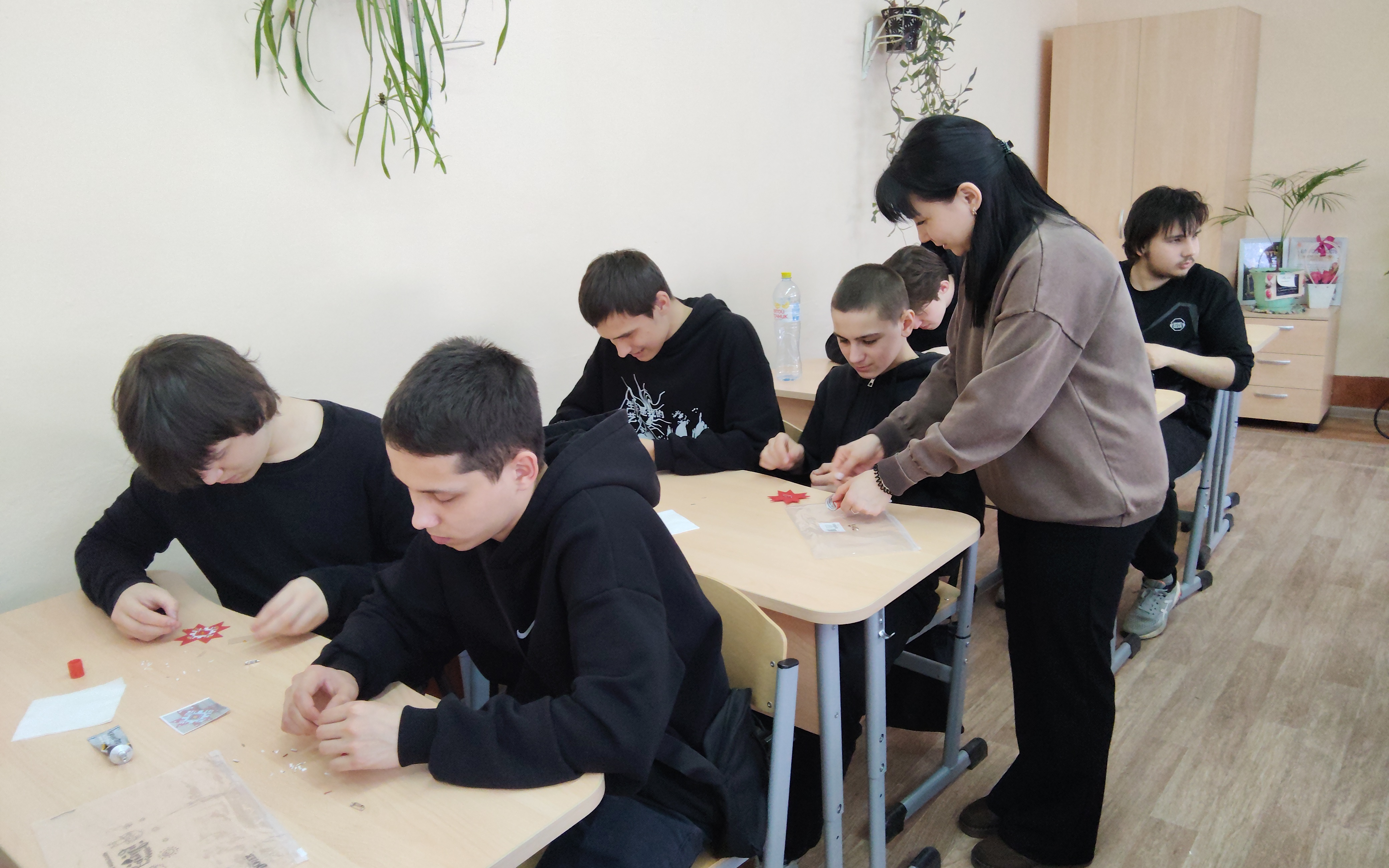 Далее ребята изготовили брошку с орнаментом, который символизирует венчающий герб, олицетворяющий свет и мудрость.