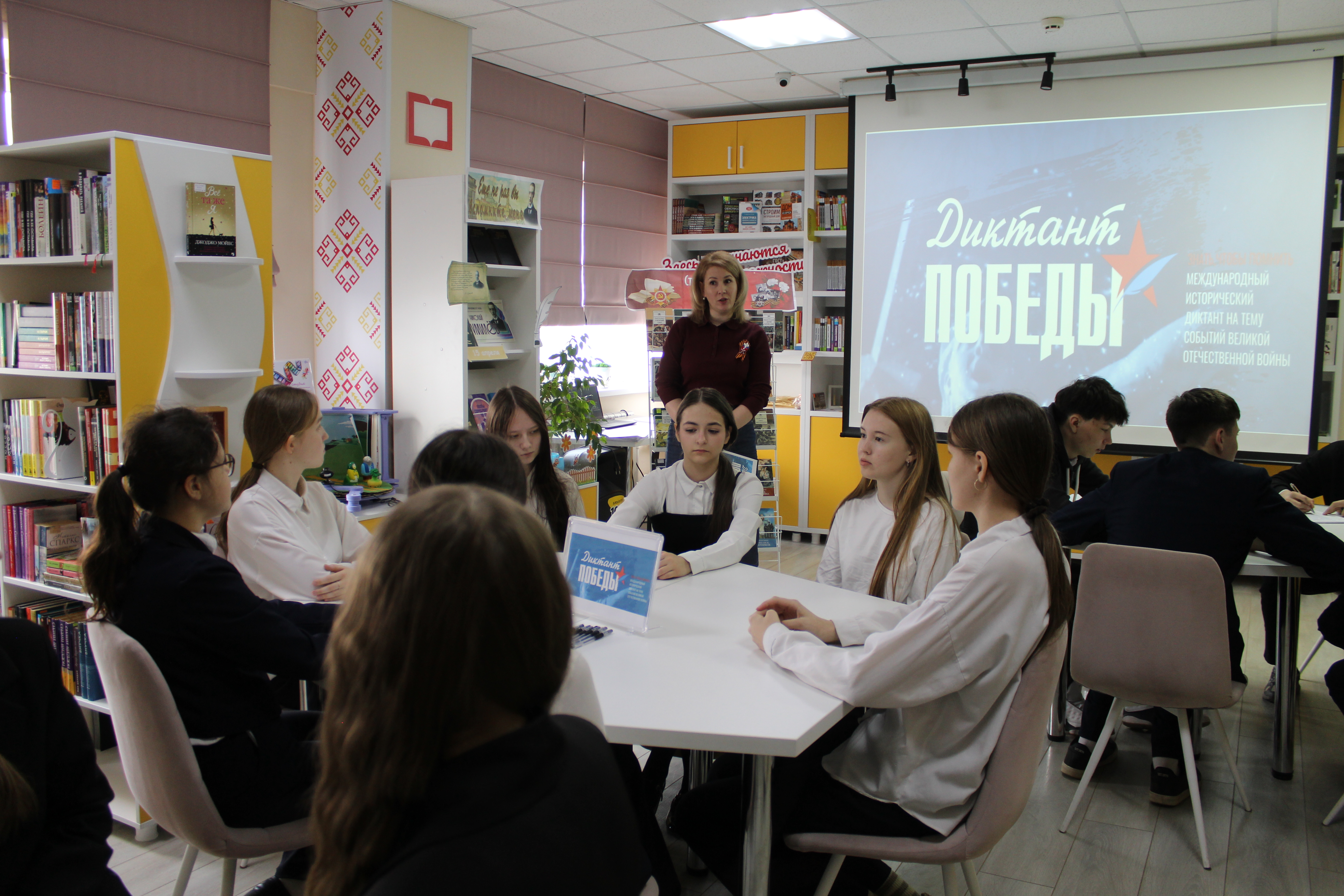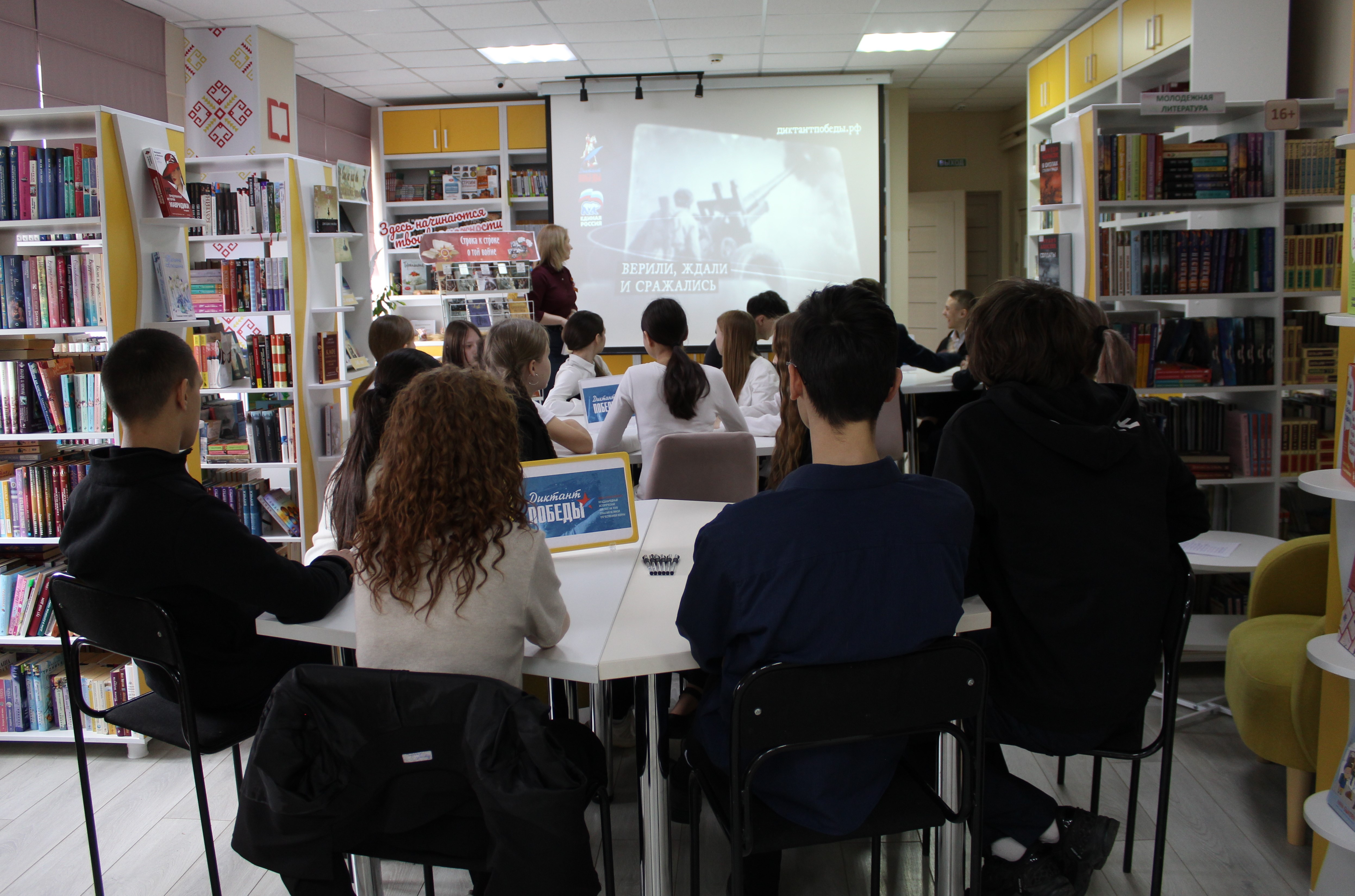 Чтобы участники смогли глубже погрузиться в атмосферу тех лет, перед началом диктанта мы провели литературный обзор под названием "Строка к строке, о той войне". Мы представили подросткам книги, которые не просто рассказывают о событиях, но и помогают почувствовать дух того времени, бережно храня истории о мужестве, стойкости и самоотверженности наших прадедов.