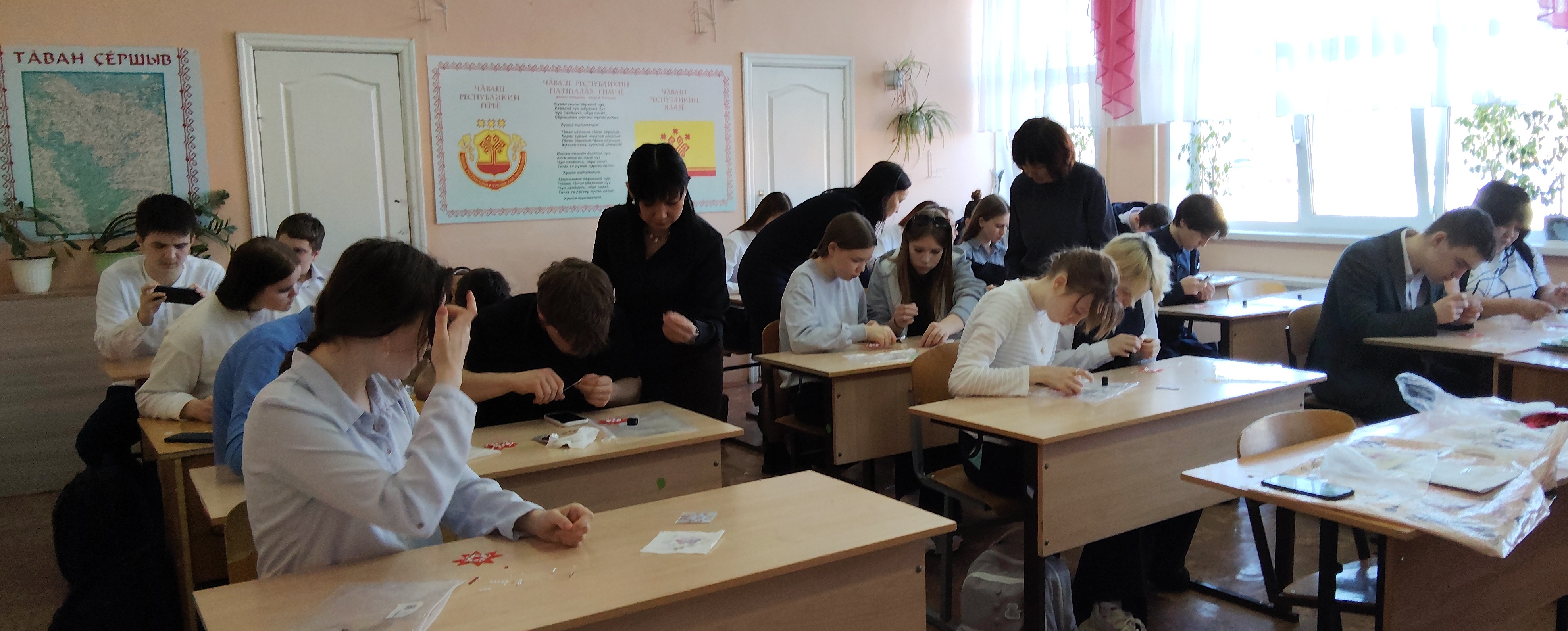 В рамках проекта «Гений места» и креативной мастерской «Многонациональное разноцветье», Центральная библиотека провела увлекательный мастер-класс для учеников 9 и 10 классов МБОУ "Тренькасинская СОШ имени Героя Российской Федерации Д.В.Семёнова".