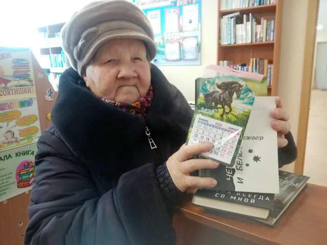 Первым, посетившим библиотеку, стала читательница Смирнова Алевтина, которая является постоянным посетителем. Она получила в подарок сладости и почётное звание "Первый читатель 2026 года ". Также она выбрала книги для чтения. Библиотекарь пожелала счастья, крепкого здоровья и весёлого настроения.