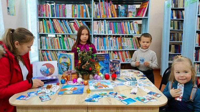 5 января в Ильбешской сельской библиотеке состоялась акция «Первый читатель Нового года». Этой чести в 2026 году удостоилась многодетная семья Васильевых, которая выбрала книги для семейного чтения на каникулах. В подарок они получили книжные закладки и открытки с новогодними пожеланиями.